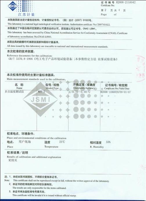 ·鹽霧腐蝕試驗箱校準證書-江蘇計量院-廣西計量院