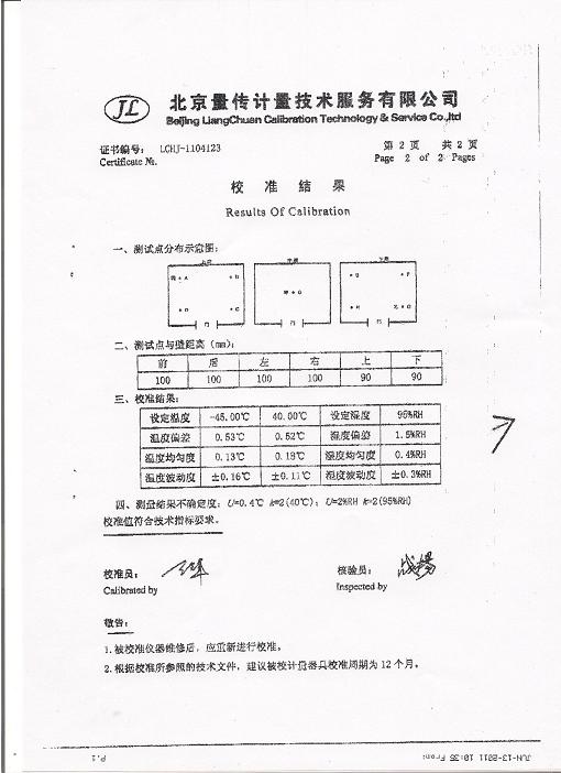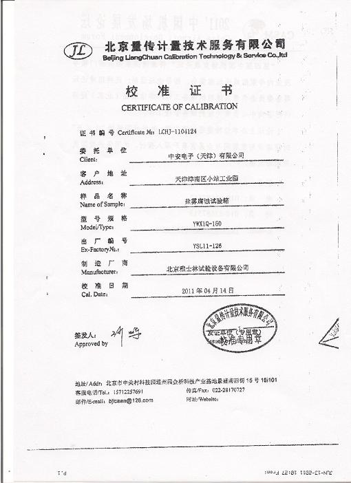 ·鹽霧腐蝕試驗箱校準證書-北京量傳計量-中安電子