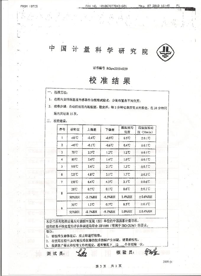 >>高低溫濕熱試驗箱校準(zhǔn)證書-中國計量院-國家雷電測試