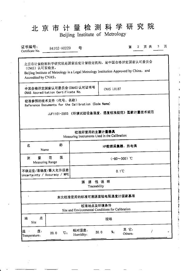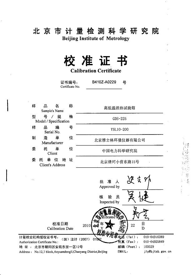 >>高低溫濕熱試驗箱校準證書-北京計量院-中國電科院1