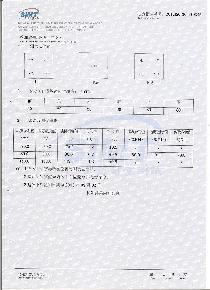 ·高低溫交變濕熱試驗箱檢測報告-上海計量院-國家光電檢測